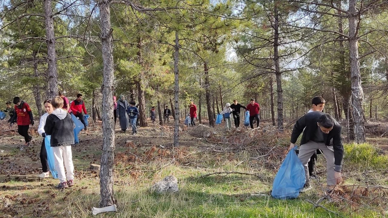 Milli Eğitim Bakanlığının 'Yeşil Vatan-Benim Okulum Geleceğe Çare' projesi kapsamında Ankara'nın Beypazarı ilçesinde, sınıfı bir günlüğüne ormana taşıyarak ders işleyip çevre temizliği yaptılar.