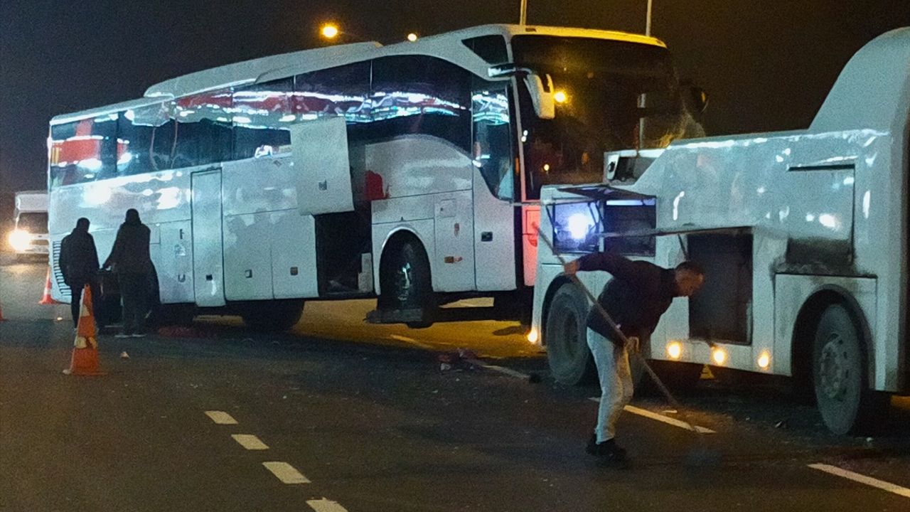 D-100 kara yolu Bolu Dağı geçişinde tır ile yolcu otobüsünün çarpıştığı kaza ulaşımda aksamaya neden oldu.