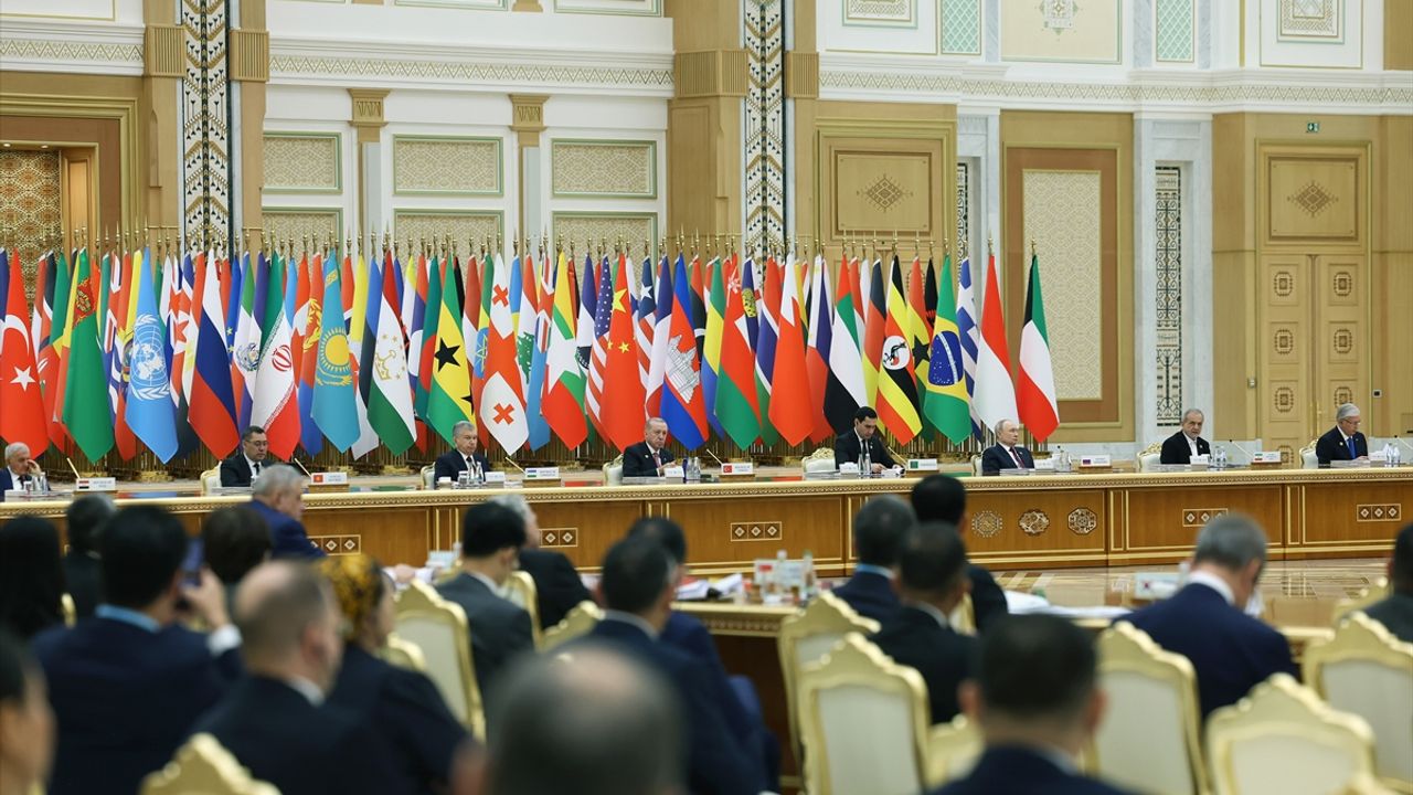 Cumhurbaşkanı Erdoğan, 2025 yılının Birleşmiş Milletler (BM) Genel Kurulu kararıyla 'Uluslararası Barış ve Güven Yılı' ilan edilmesi ve Türkmenistan'ın daimi tarafsızlık statüsünün 30. yıl dönümü vesilesiyle Başkent Aşkabat'ta düzenlenen 'Uluslararası Barış ve Güven Forumu'na katıldı.