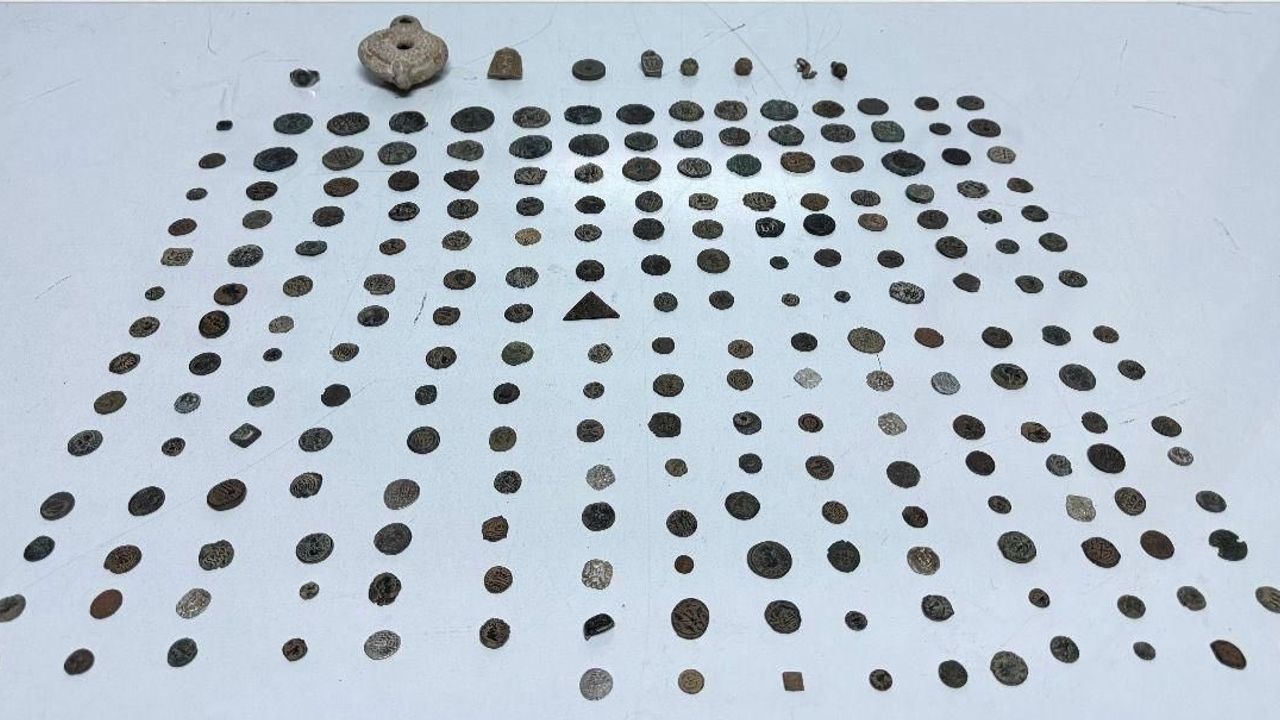 Aramalarda, Roma ve Bizans dönemine ait 222 parça sikke, 5 farklı figürde tarihi eser, firavun figürlü tarihi eser, yağ lambası ve yüzük ele geçirildi.
