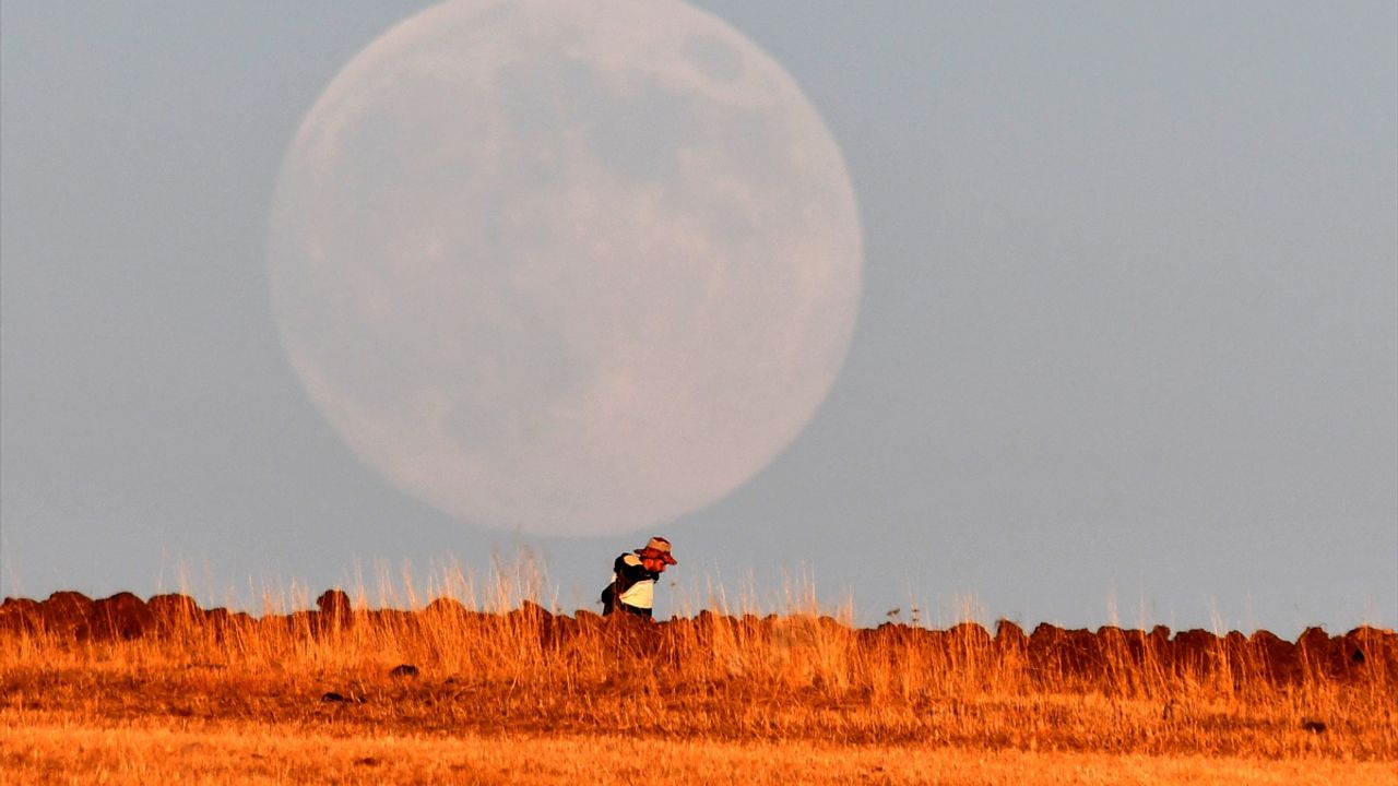 Kars'ın Sarıkamış ilçesinde beliren süper ay, güzel bir görüntü oluşturdu.