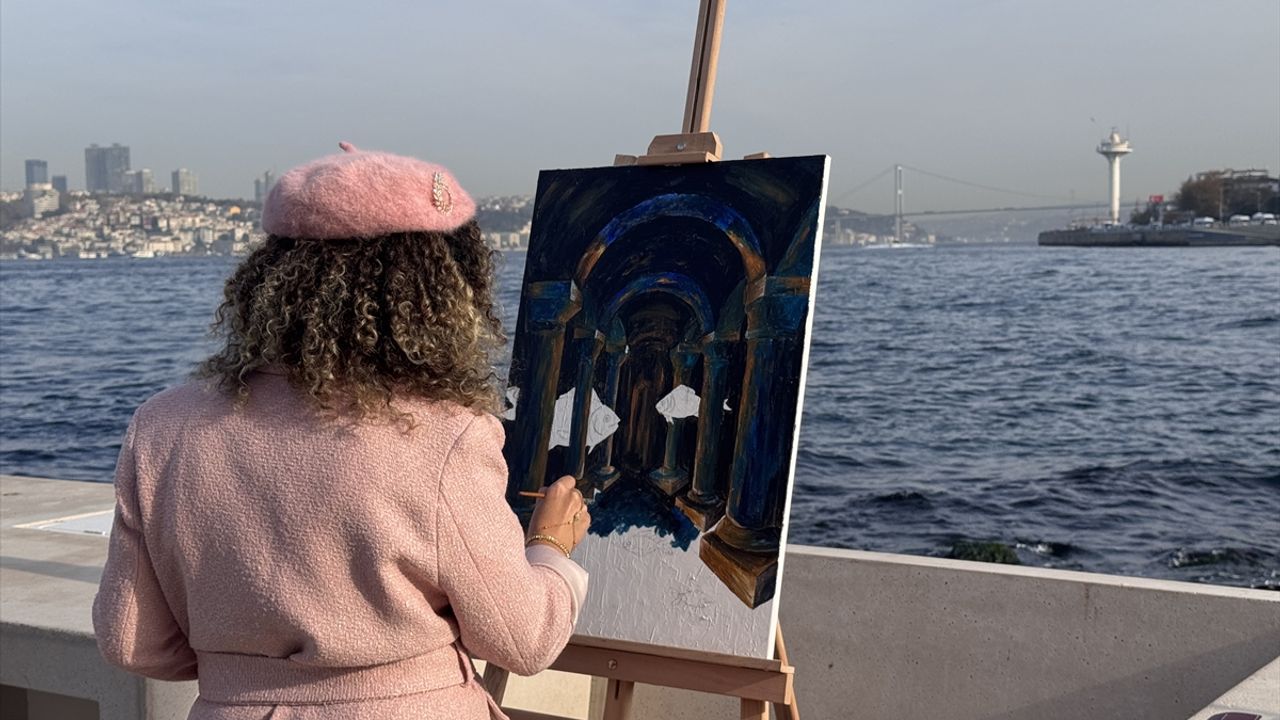 Kız Kulesi'nde gerçekleştirilen etkinlikte, farklı branşlardaki 30 öğretmen Kız Kulesi'nden İstanbul'u resmetti.