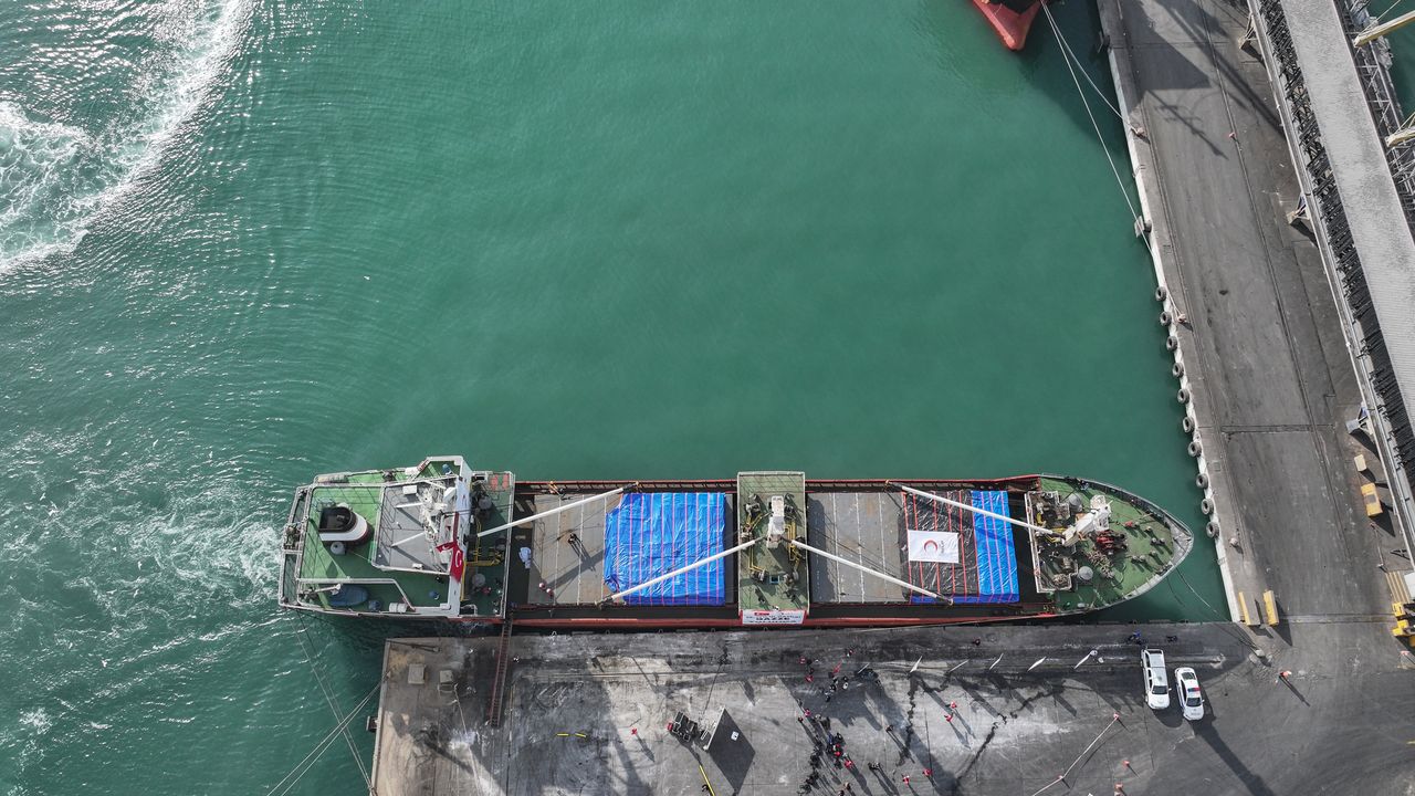 Bu kapsamda Türk Kızılay tarafından hazırlanan ve içerisinde gıda ve battaniye malzemeleri ağırlıklı yaklaşık 800 ton temel insani yardım malzemesinin yer aldığı 'İyilik Gemisi'nin uğurlanması için Mersin Uluslararası Limanı'nda tören düzenlendi.